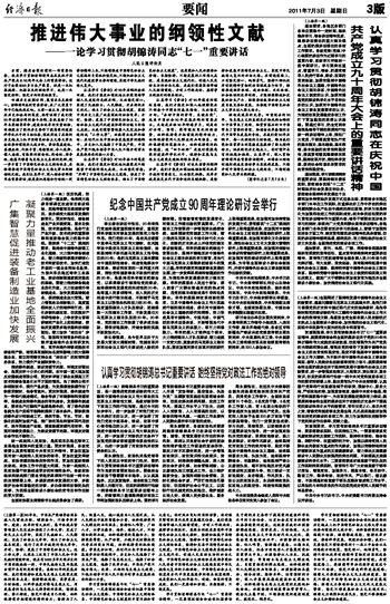 纪念中国共产党成立90周年理论研讨会举行 李长春出席会议并讲话