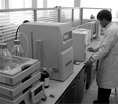 图1:天津天士力集团科研院的科研人员正在对新药成分进行检测。 本报记者 武自然摄
