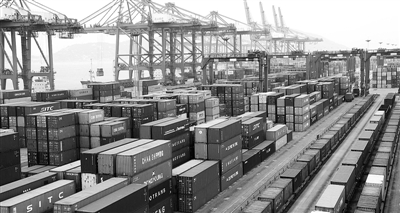 7月1日,江苏连云港港集装箱码头一派繁忙。