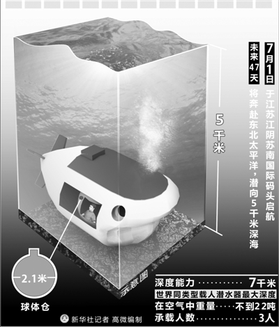 据介绍,这次海试将全面考核“蛟龙号”在5000米水深的设计功能和性能,而“蛟龙号”的设计下潜深度是7000米。去年,“蛟龙号”在3000米级海试中最深下潜到3759米,标志着我国成为继美、法、俄、日之后,第5个掌握3500米以上大深度载人深潜技术的国家。