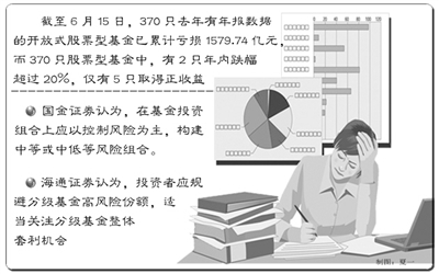 数据显示,截至6月15日,370只去年有年报数据的开放式股票型基金已累计亏损1579.74亿元,而370只股票型基金中,有2只年内跌幅超过20%,仅有5只取得正收益。据统计,截至6月15日,净值增长排名第一的鹏华价值优势基金比排名末位的基金首尾业绩增长率相差26.8%。