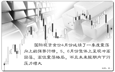 国际现货金价今年以来的走势总体上保持着上行趋势,而特点则是急跌慢涨。4月份现货金延续了一季度震荡向上的强势行情,起步于1420美元/盎司价位上方,并成功于4月20日盘中首度跃上1500美元/盎司整数关口,达1506.20美元/盎司。当月,盘中最高曾达到1569.40美元/盎司的价位,收盘时基本站稳了1500美元/盎司上方。