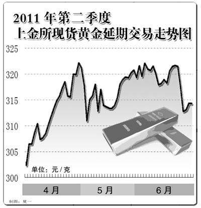 此外,上海黄金交易所统计数据显示,二季度黄金递延品种Au(T+D)呈现高位盘整格局,并且运行趋势已由涨幅逐月收窄转为震荡下行。