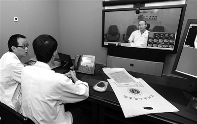 上图为汶川县人民医院通过思科网真高清视频会议系统与省人民医院远程会诊。谭 辛摄