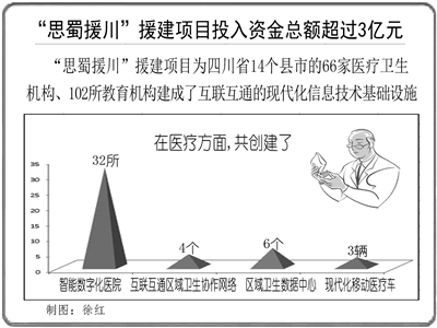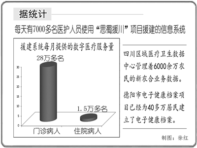 “思蜀援川”项目不只针对扶持单一的受灾医疗卫生机构,而是从整体上提升了区域的医疗卫生服务能力。通过信息化的手段缓解群众“看病难”的问题。据统计,每天有7000多名医护人员使用“思蜀援川”项目援建的信息系统,援建系统每月为28万多名门诊病人、1.5万多名住院病人提供数字医疗服务。在四川,区域医疗卫生数据中心管理着6000余万农民的新农合业务数据。德阳市电子健康档案项目作为卫生部试点,已经为40多万居民建立了电子健康档案。