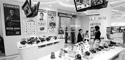 上图 “佳能影像乐天地”展厅一层以时尚易用的影像类产品及输出设备为主,二层则以展示专业产品为主。