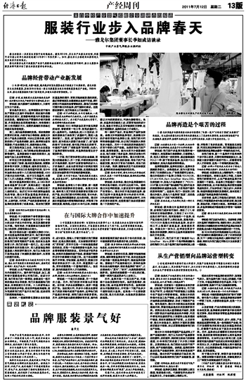 记者:业内有个说法,“想要在服装业赚大钱,就要靠品牌”。怎样理解品牌经营对服装业发展的重要性?