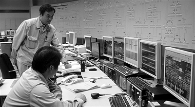 上图:宝钢集团在钢铁余热回收利用方面的工作成效显著。图为宝钢能源中心调度室场景。