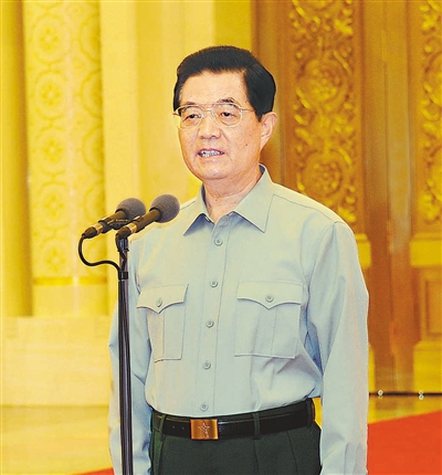 新华社北京7月11日电 (记者曹智 张东波) 中共中央总书记、国家主席、中央军委主席胡锦涛11日在会见武警部队第二次党代表大会代表时强调,高举中国特色社会主义伟大旗帜,以邓小平理论和“三个代表”重要思想为指导,深入贯彻落实科学发展观,全面推进现代化武警力量建设,努力开创武警部队建设科学发展的新局面。
