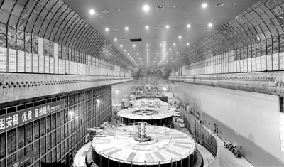 7月14日拍摄的三峡地下电站施工现场。7月13日11点15分,三峡地下电站第三台机组顺利通过了72小时试运行,进入投产前的最后检查调试阶段。即将投产的30号机组是三峡地下电站今年首批3台发电计划中的最后一台。机组试运行结束后,技术人员将对机组进行投产前的全面检查和调试,之后将交付三峡电厂投产发电。 郑家裕摄(新华社发)