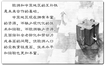 欧洲和中亚地区的互补性是未来合作的基础。中亚地区现在拥有丰富的资源,而缺少现代化的技术和经验。而欧洲缺少资源,且面临社会老龄化和劳动力成本高的问题,但欧洲人口的受教育程度高、技术水平和经验也更加丰富。奥地利外长施平德勒格表示,为了应对未来的挑战,特别是能源安全,中亚地区需要推动现代化和创新进程,欧洲则可以参与这一进程。