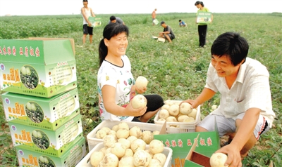 7月15日,山东无棣县西小王乡横道村的村民正在采摘甜瓜。近年来,横道村甜瓜种植合作社选取优质甜瓜品种,采用生态有机种植管理,培育了优质品牌,促进了农民增收。 本报记者 李树贵摄