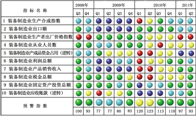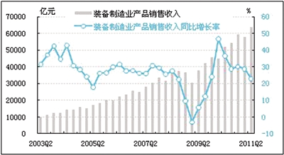 2011年三季度,宏观调控对企业的影响尤其是资金供应方面的影响可能会进一步显现,全球经济复苏缓慢影响行业出口的持续快速增长,装备制造业的景气度可能继续呈平稳回落态势;但基于政策的支持、投资和转型对装备产品的双重需求推动以及不利因素影响度的减弱,装备制造业仍将继续在景气区间运行。