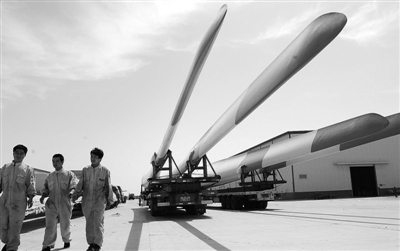 甘肃酒泉新能源装备制造产业园内运输风机叶片的车辆整装待发。曾经以传统农业为主的甘肃酒泉肃州区以新能源装备制造业为牵引,不断壮大工业经济,形成了以工业经济为主导的区域经济发展格局。今年1月至5月,全区规模以上工业企业累计完成工业总产值96.87亿元。