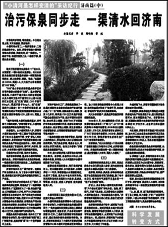 8. 《山东59条河流是这样变清的》(2011年6月27日)一版