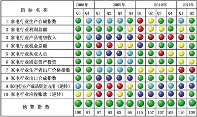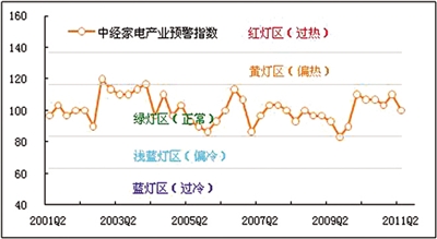 预警:2011年二季度,中经家电产业预警指数为100.0点,较上季度回落10.0点⑥,处于“绿灯区”中心线的位置。