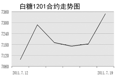 7月19日,郑糖主力1201合约开于7218元/吨,收于7348元/吨,延续了此前上升的趋势。继巴西糖业组织Unica下调2011年至2012年制糖年巴西中南部地区的食糖预期产量后,国际糖业组织(ISO)随即表示,估计2011年至2012年制糖年全球食糖供给过剩量较先前预期的300余万吨将减少100万吨,巴西的食糖出口也比上年同期减少20%。