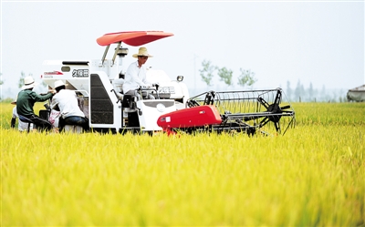 7月20日,一台收割机在江西省新建县联圩镇象湖村早稻田作业。目前,江西省2272.5万亩早稻进入收割期,全省各地农民正利用晴好天气抓紧抢收。 新华社记者 周 科摄