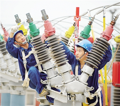 7月22日,河北省沧县供电公司员工对当地一座变电站进行设备检修。进入暑期,该公司积极维护辖区内线路及设备、升级改造用户表箱,并加强电网运行监控工作,确保了当地居民的用电需求。 本报记者 赵 晶摄