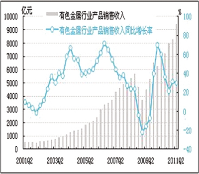 2011年二季度数据表明,有色金属行业产销两旺,企业盈利水平较高,行业景气度有望继续提升,随着国家一系列宏观调控政策效应的释放,有色金属行业的发展将更趋合理。