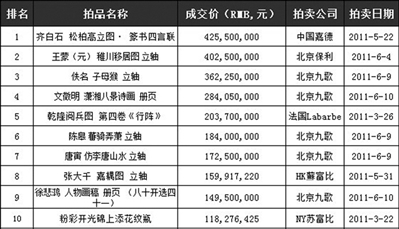 自2009年中国艺术品市场进入“亿元时代”以来,始终处于“高温状态”,对于这个市场而言,破纪录、创新高似乎已毫不稀奇。即便如此,刚落幕不久的2011年春季拍卖行情的火热依然让人惊叹连连。