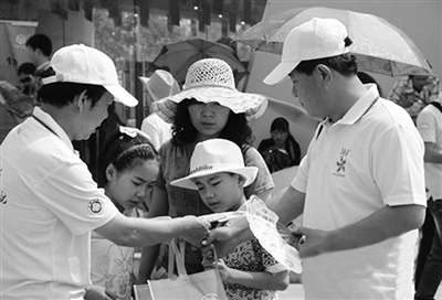 下图 世园会上,陕西省气象局防雷中心为游客送上一份清凉礼品——防雷科普知识小扇子。