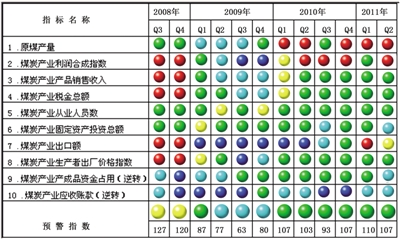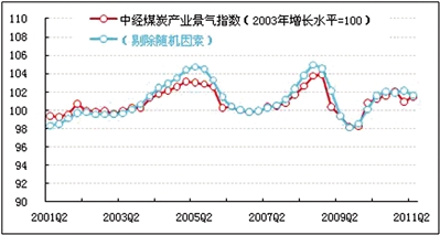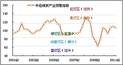 中经煤炭产业景气指数报告显示,2011年二季度,中经煤炭产业景气指数为101.5点(2003年增长水平=100),比上季度上升0.6点;中经煤炭产业预警指数为106.7点,比上季度下降3.3点,继续稳定在表示运行正常的“绿灯区”。