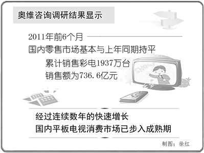 “经过连续数年的快速增长,国内平板电视消费市场已经步入成熟期。”中国电子商会副秘书长陆刃波在总结上半年彩电业发展情况时说。