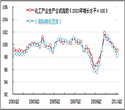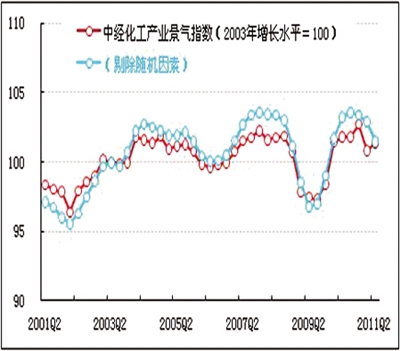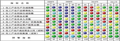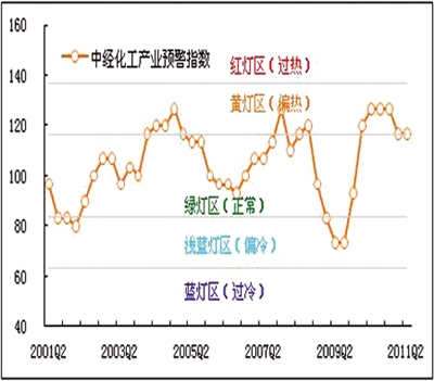 中经化工产业景气指数报告显示,2011年二季度,中经化工产业景气指数为101.4点,比上季度上升0.6点;中经化工产业预警指数为116.7点,与上季度持平,继续在“绿灯区”与“黄灯区”的临界线上运行。