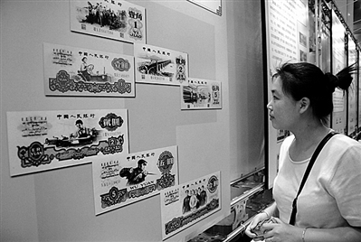 第三套人民币发行于1962年4月,2000年7月正式停止流通,流通时间长达38年,是截至目前我国发行的五套人民币中流通时间最长的,也是新中国成立后首套由我国独立设计、印制的第一套人民币。图为市民在金融知识展览上观看有关第三套人民币的图片。