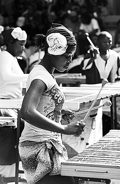 近日,南非第六届国家木琴节在约翰内斯堡举行,来自南非全国各地的1000多名木琴爱好者参加了木琴演奏比赛和表演活动。图为来自林波波省的木琴爱好者参加木琴演奏比赛。 新华社发