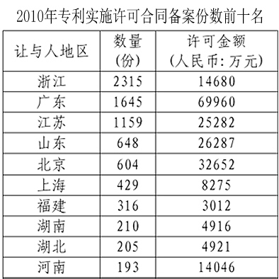 第一期报道即从“2010年专利许可合同备案”的统计出炉说起——