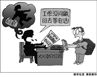 暑假期间,很多大学生正抓紧时间找兼职参加社会实践,这既长见识,又增才干,还能获得一些劳动报酬,可谓一举多得。然而,某些黑中介却蠢蠢欲动,利用大学生权利意识不强,社会经验欠缺等弱点,用高薪、优职诱导求职大学生签订协议书,骗得数量不菲的中介费后,黑中介便不再作为,甚至人去楼空,使得大学生“职”财两空,实在是“黑”人不浅。