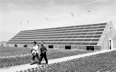 近日,位于宁夏盐池县高沙窝镇的宁夏发电集团光伏温室里的各类蔬菜开始收获。据了解,该光伏温室目前处于试验阶段,将蔬菜大棚与光伏发电相结合,在大棚顶部安装太阳能电池板发电,并利用小型风车为室内照明、补光和取暖提供电源,内部种植无公害蔬菜。