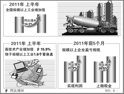 产业结构调整稳步推进。钢铁、汽车等规模经济显著行业产业集中度进一步提高。高新技术产业发展较快,上半年高技术产业增加值同比增长15.9%,快于规模以上工业1.6个百分点。制造业加快向中西部地区转移,东、中、西部地区规模以上工业增加值同比分别增长12.4%、17.8%和17.3%,中西部地区增加值占全国规模以上工业比重进一步提高。