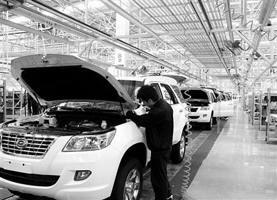 广汽吉奥汽车落户东营。图为生产车间一角。