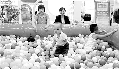 下图:7月29日,在第三届妇儿博览会上,小朋友在一家乳制品企业展台的游戏区玩耍。当日,第三届中国(北京)国际妇女儿童产业博览会在北京国家会议中心开幕。本届妇儿博览会以“给您安心快乐的美好生活”为主题。 罗 伟摄(新华社发)