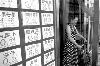 图1:8月4日,北京天桥京客隆超市,近期的食用农产品价格已呈小幅回落态势。 本报记者 李树贵摄