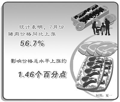 国家统计局9日发布数据显示,7月份全国居民消费价格总水平(CPI)同比上涨6.5%,涨幅比上月的6.4%提高了0.1个百分点。物价的逐月走高,引起了广泛关注和诸多议论。比较集中的有两点:一点是物价上涨是否见顶?中国是否进入了高通胀时代?再一点,上涨最厉害的猪肉价格是不是导致物价总水平上升的“元凶”?猪肉价格上涨的背后究竟反映了哪些问题?这都需要深入进行剖析——