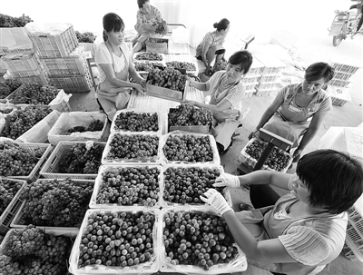 近日,山西省临猗县西祁村2000亩优质葡萄陆续采摘上市。近年来,西祁村在当地葡萄专业合作社的技术引导下,众多农户依靠科学种植高产优质葡萄走上了富裕路。