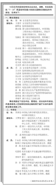 国务院决定调整充实“7·23”甬温线特别重大铁路交通事故调查组和专家组