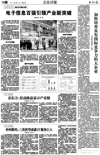 2011年中国软件业务收入百强企业名单揭晓,神州数码(中国)有限公司以持续强劲的发展势头与华为技术有限公司、中兴通讯股份有限公司分列前三位,这是神州数码继2009年、2010年后第3年位居行业前三位。