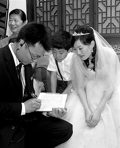 邹瑞云是土生土长的广州姑娘,她在婚礼上穿的衣服除了婚纱,还有一套南方的传统结婚礼服裙褂。她告诉记者,在广州,买一套用金线、银线手工缝制的裙褂要花上万元,她自己在小店里淘来的这条用机器织出的裙褂只要600元,做工也很精良,“看上去也没什么区别,而且只穿一次,花太多钱不大划算。”