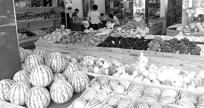 成都市郭家桥某水果超市。由四川省内各水果基地直供的西瓜、芒果等应季水果,正在热销中。 本报记者 喻 剑摄