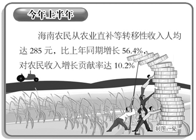 今年上半年,海南省种植业完成增加值151.72亿元,按可比价计算,比上年同期增长5.6%,增速比一季度加快了0.8个百分点,对农业经济增长贡献率达45.1%,成为稳定农业经济增长的重要基础。去年以来,海南省实施一系列大宗农产品单产提升计划,加大了农业生产投入和农民直补力度,农业科技成果转化步伐明显加快,大宗农产品单产产量得到有效提升,促进了种植业生产稳步发展。上半年,农民从农业直补等转移性收入人均达285元,比上年同期增长56.4%,对农民收入增长贡献率达10.2%;早稻、番薯、花生等单产产量分别比上年同期增长了5.6%、4.0%和7.6%,促进了粮食、油料总产量分别增加4.2%和4.4%。上半年,全省蔬菜收获面积比上年同期增长8.8%,瓜菜产量增长10.0%;水果总产量比上年同期增长13.9%。热带花卉、桑蚕等特色农业继续亮点频现支持农业增长。上半年,全省花卉收获面积比上年同期增长9.9%。