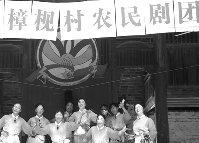 图1:赣西永新县樟枧村农民剧团的女演员正在演唱宣传新农村建设的永新小鼓。