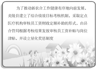 为了推动新农合工作健康有序地向前发展,炎陵县建立了综合绩效目标考核机制,采取定点医疗机构审核员工资财政定额补助的形式,由县合管局根据考核结果发放审核员工资补贴与岗位津贴,并设立量化奖惩制度。为此,炎陵县制定了年度新农合考核细则。这种实行乡镇卫生院与合管站双重管理的运行模式,既充分体现了政府的主导与监管职能,拉近了干群关系,又最大限度地调动了审核员队伍的积极性,有效提高了基金的管理效率,减少了新农合的运行成本。