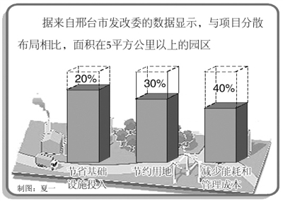形成资源利用共享平台,有效减少投资成本,促进生产资源有效利用。如果企业分散建厂,水、电、路、讯、暖等设施每样都要独立投资,成本自然不低。据来自邢台市发改委的数据显示,与项目分散布局相比,面积在5平方公里以上的园区,节省基础设施投入20%,节约用地30%,减少能耗和管理成本40%。比如,清河县的羊绒产业是该县第一大支柱产业,过去是村村点火,户户冒烟,投资不小,但产量销售均受限制。为了改变这种现状,清河县建设了清河羊绒科技孵化园区,统一规划了生产加工区、产品展示交易区、配套服务区和生活区四个部分,并配套了园区科研中心和进出口检验中心,建设了中国羊绒博物馆,吸引了近千家中小企业入驻,使得清河羊绒质量和名气大大提升。
