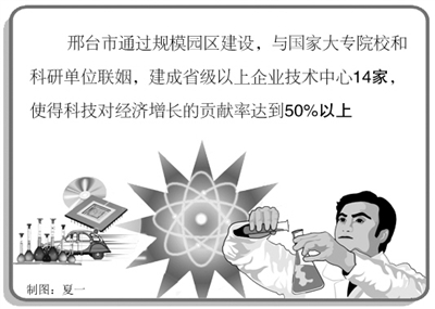 形成科技创新共享平台,有效提高生产效率。企业要加快发展,科技创新是第一支撑力量。但邢台企业多为乡镇企业,很难与科研单位结成战略联盟,而邢台市利用“集体力量”引进科研单位,情况自然大不相同,邢台通过规模园区建设,与国家大专院校和科研单位联姻,建成省级以上企业技术中心14家,使得科技对经济增长的贡献率达到50%以上。过去沙河有百家玻璃生产企业、上百条的生产线,可产值不过十几亿元,且产品以低档玻璃产品为主,市场逐渐萎缩。邢台市组建沙河玻璃产业经济技术开发区后,在将生产线整合为27条的同时,与武汉理工大学携手建设了沙河玻璃技术研究院,提供攻关服务,使得园区产品质量达到了国际一流水平。特色玻璃总产量高达1.2亿重量箱,占到了全国市场份额的半壁江山。