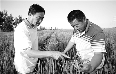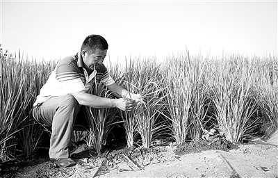 在新疆石河子市的新疆生产建设兵团天业集团生态园,有400亩膜下滴灌水稻田。这是2011年8月初记者拍摄到的画面,图1是给水稻供水的滴灌带,图2是膜下滴灌种植的水稻,粒大饱满,预示着今年又将是一个高产丰收年。